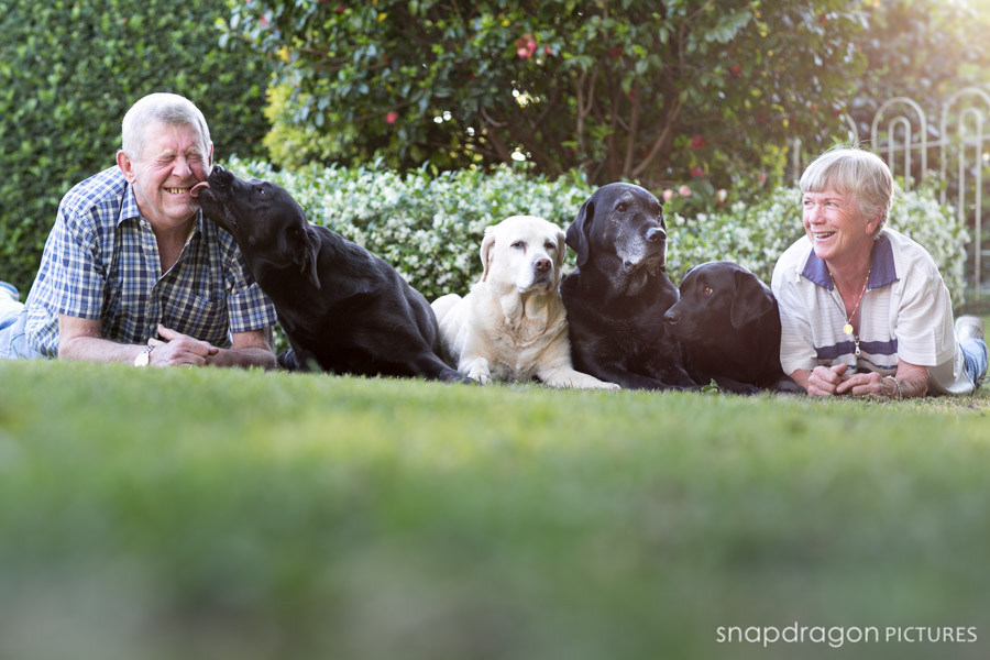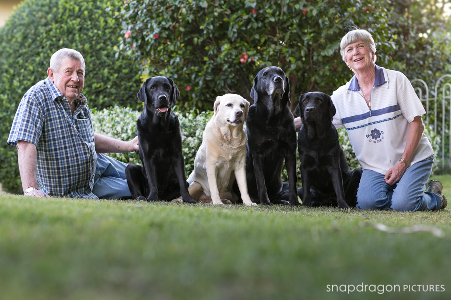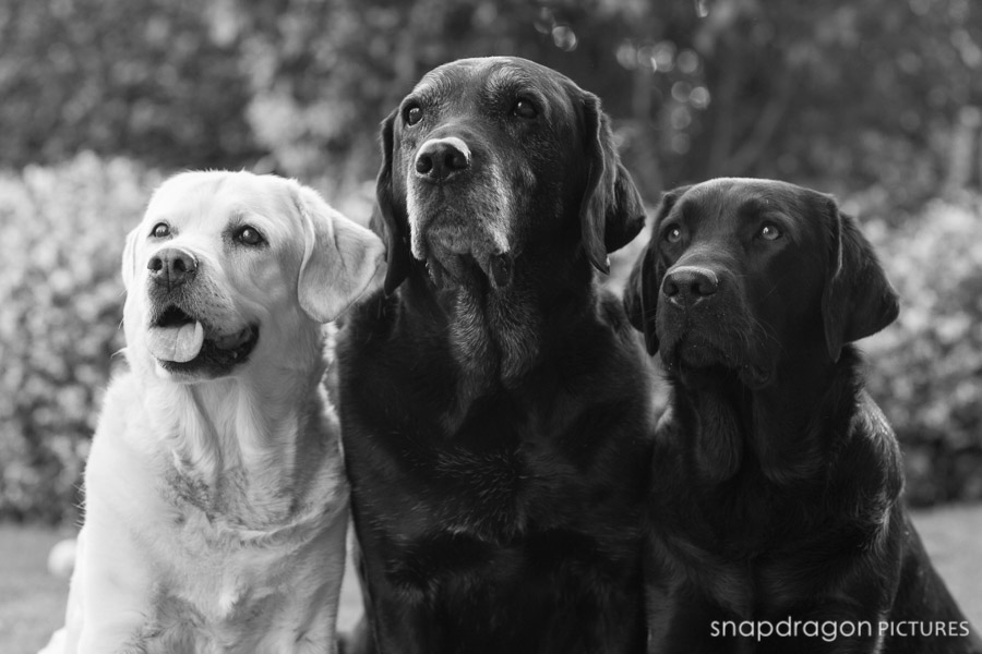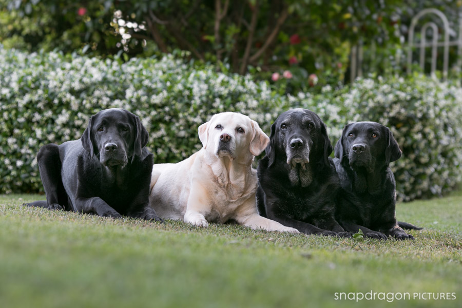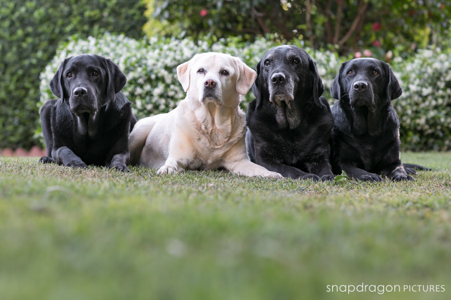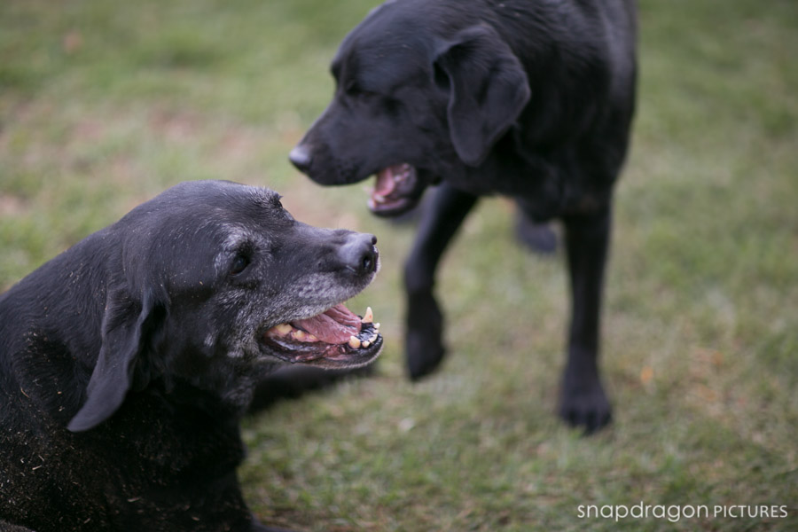 During one Sunday afternoon visit with the fandamily, Sean and I treated Sean’s parents to a very quick family portrait shoot with their four spirited Labradors. Our Siberians were horrified that they, for once, were not the center of attention, and they occasionally voiced this opinion loudly and photobombed our background. The Labs of course where really good little posers, though extremely slobbery. As with all of my personal photographs, I’ve neglected the editing until nearly 2 years later, so sadly Bonnie the yellow lab is no longer with us. It’s strange not having her around. She’s been here for as long as I’ve known Sean, and I often forget that she’s not here anymore. Bonnie was the first trained dog I ever met. She was a famous therapy dog, and an absolute rock star. I was constantly amazed when I watched Jenny working Bonnie, and I remember thinking that training a dog was some kind of magical process that required supernatural powers. Bonnie and her late brother Tyler were the dogs who first inspired me to learn about dog-training and behaviorism, which ultimately led to the arrival of our two Sibes and my obsession with all things dog. To say that Bonnie is missed is an understatement. I hope that these photos will help everyone who loved her to remember her clearly forever. Photography by Sean and Leanne Williams.